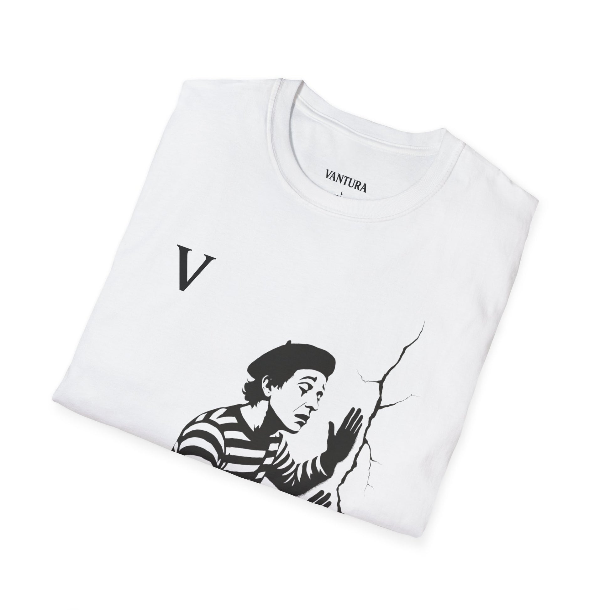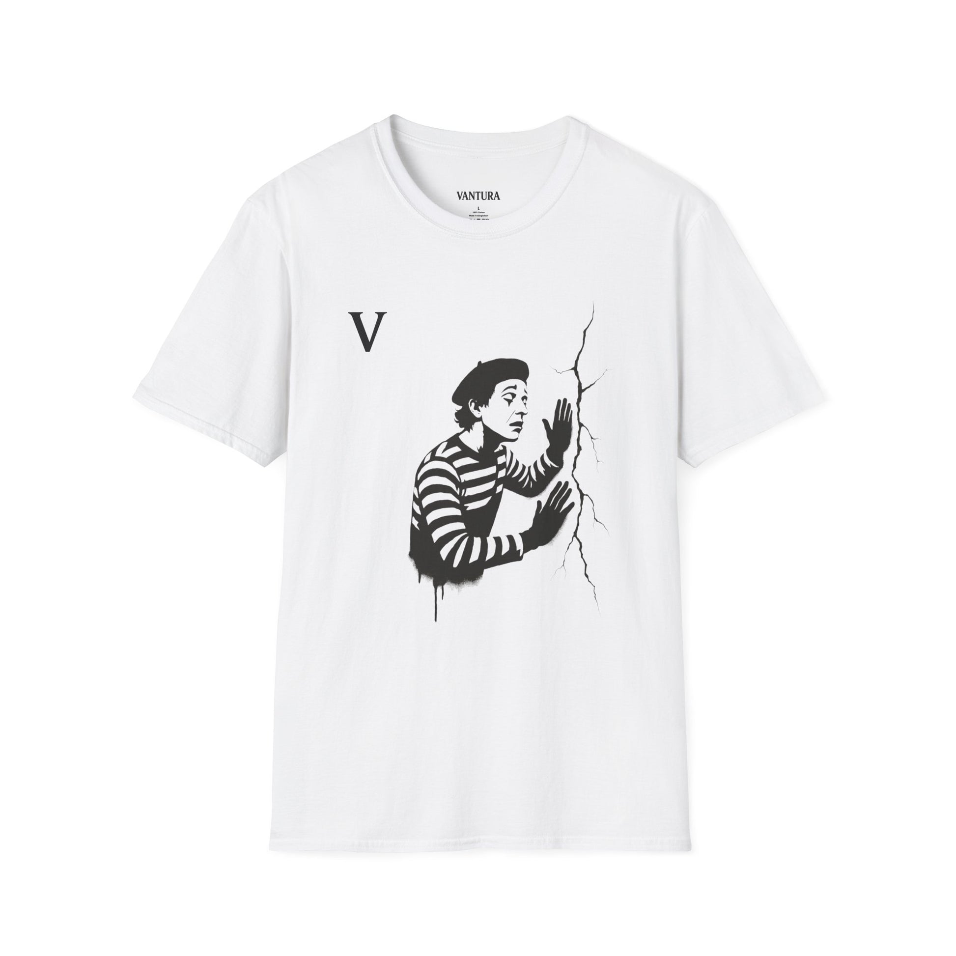 A wall that was never real, breaking under pressure. Shattered Silence flips the classic mime act into raw rebellion — invisible limits cracking apart, painted in stark stencil style. This piece isn’t about pretending, it’s about breaking through.